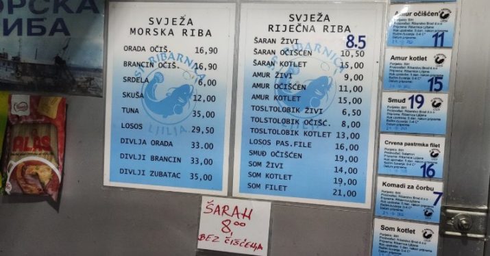 Jedina razlika primjetna je kod šarana, koji je pojeftinio za pola marke, te sada bez čišćenja iznosi 8KM.