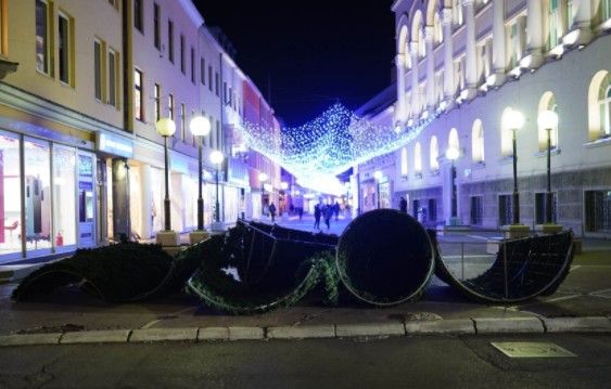 Snažan vjetar oborio je i veliku novogodišnju jelku u Gospodskoj ulici.