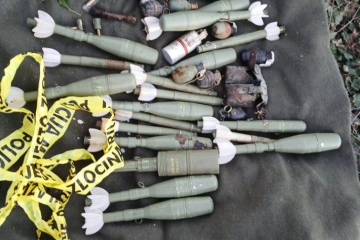 “Arsenal je sastavljen od tromblonskih mina, različitih upaljača, BRK kumulativne mine, ručne bombe”, rekao je Mišo Pamučina, koordinator za deminiranje Grada Trebinje.