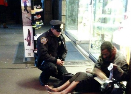 Fotografija koja prikazuje policajca kako obuva cipele jednom beskućniku u New Yorku obišla je cijeli svijet. Mnogi su bili ganuti ovim postupkom i pohvalili solidarnost policajaca, no ispostavilo se da “bosonogi beskućnik” Jeffrey Hillman ipak ima krov nad glavom .