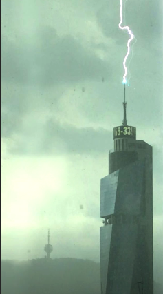 Mada uopšte nije rijetkost da za vrijeme velikog nevremena i oluja grom udari u najvišu zgradu na Balkanu ”Avaz Twist Tower” (175 metara), današnju takvu situaciju snimio je Sarajlija Midhat Poturović.