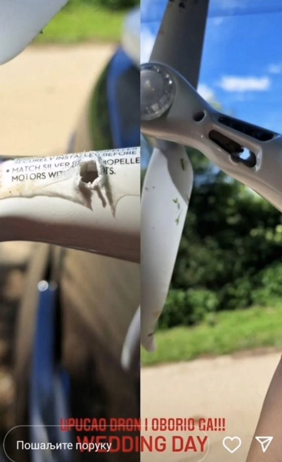 “Upucao dron i oborio ga. Wedding day”, pisalo je u objavi na Storiju, na Instagram profilu te firme.