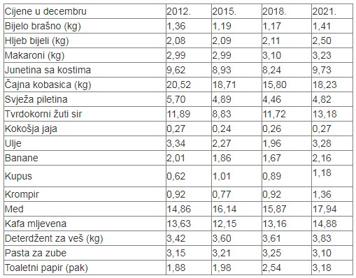 Od 2012. (za koju su dostupni podaci za Republiku Srpsku) nikad skuplji nije bio hljeb nego što je sada, pa i tjestenina, te neke vrste svježeg mesa, dok su, istina, druge vrste mesa pojeftinile.
