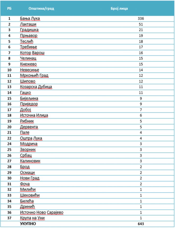 Najviše oporavljenih je iz Banjaluke – 336, a slijede Laktaši, Gradiška, Prnjavor, Teslić, Trebinje.