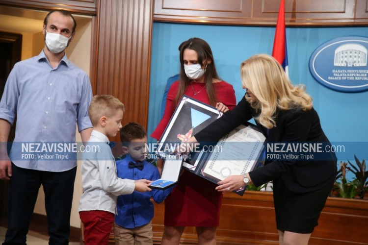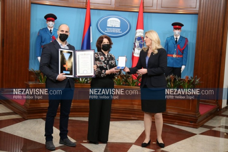Ordenom krst milosrđa, za izuzetne zasluge i doprinos u organizovanju i pružanju medicinske pomoći, spasavanju ljudskih života i ulaganja herojskih napora u borbi protiv pandemije kovida 19, žrtvujući ono najvrijednije, svoj život, predsjednica Republike postuhmo je odlikovala primarijusa doktora Dragana Vojvodića, doktora Marka Pekiju, laboratorijsku tehničarku Vladimirku Mirnić i generalnog sekretara Crvenog krsta Republike Srpske Đoku Mihajlovića.