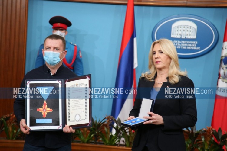 Predsjednica Srpske, na prijedlog Ministarstva zdravlja i socijalne zaštite Republike Srpske, odlikovala je za izuzetne zasluge i doprinos u organizovanju, sprovođenju i pružanju medicinske pomoći, spasavanju ljudskih života, kao i svaki drugi vid podrške i ulaganja herojskih napora u borbi protiv pandemije kovida 19, a za čiji je doprinos zaslužan cjelokupan zdravstveni sistem kojeg čine svi zdravstveni radnici i nemedicinski sektor, heroje 2020. godine, i to Univerzitetski klinički centar Republike Srpske, devet bolnica u Republici Srpskoj i pedesetpet domova zdravlja u Srpskoj.