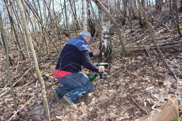 “Ujutro treba pronaći veće stablo i na njemu probušiti rupu dubine do tri centimetra i širine do šest milimetara. Onda se unutra stavi plastična cijev, ali ne do kraja, a drugi dio se sprovede u flašu. Naveče se vratite, pokupite sok i začepite rupu klipicom i ilovačom. Drvo je najbolje bušiti jednom u dvije godine kako bi moglo da se oporavi” – savjetuje Rešidović i ističe da najveća stabla mogu dati do pet litara soka.