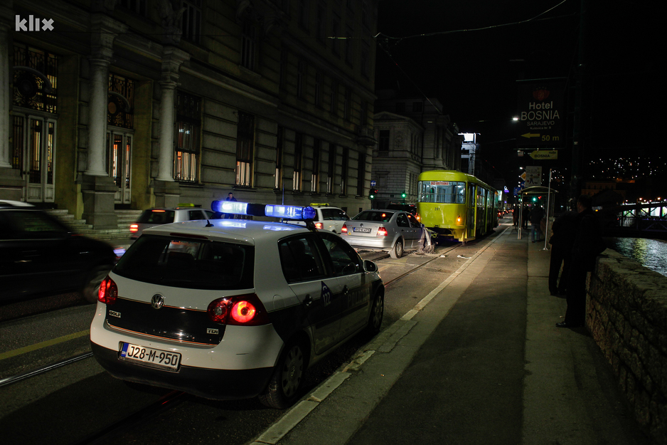 Saobraćajna nesreća se dogodila kasno sinoć u ulici Obala Kulina bana u Sarajevu, a u njoj je učestvovao putnički automobil Volkswagen Bora i tramvaj.