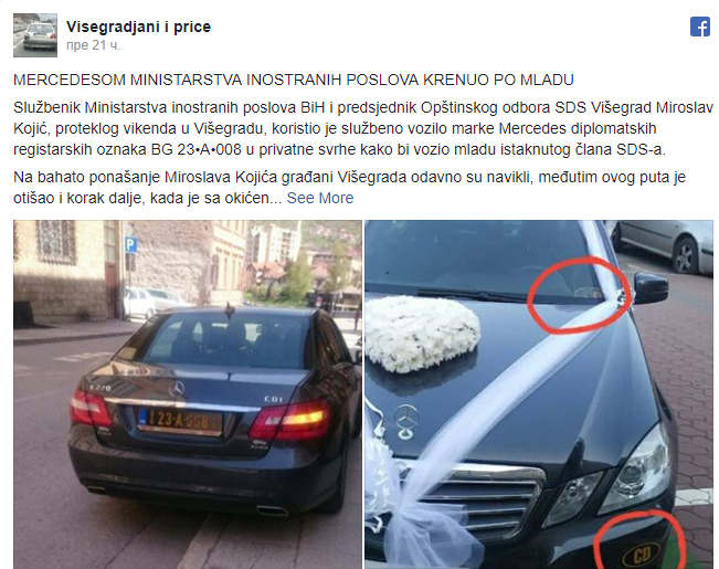 Kojić je koristio službeno vozilo marke “mercedes” diplomatskih registarskih oznaka BG 23•A•008.