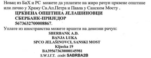 Takođe, dodaju da svi koji žele da pomognu, a nisu u mogućnosti da odu do crkve, mogu to uraditi putem računa.