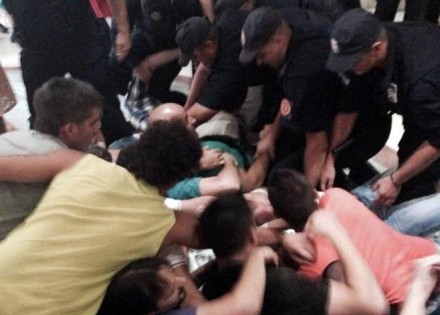 Pripadnici interventne policije izbacuju radnike iz Hotela “Mogren” na očigled gostiju, a veliki broj njih priveden je i na razgovor, nakon kojeg su pušteni.