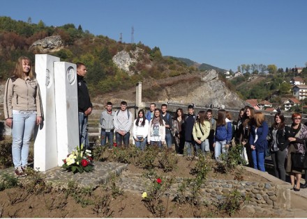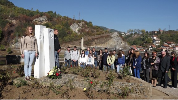 Grupa učenika sa profesorima književnosti položila je danas cvijeće na spomen-obilježje kod mosta Mehmed-paše Sokolovića na Drini, povodom obilježavanja 120 godina od rođenja književnika Ive Andrića.