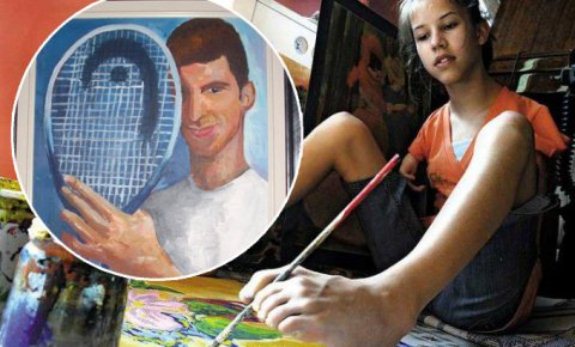Tinejdžerka iz Bačke Palanke, Dejana Bačko (17), rođena je bez ruku, ali zato u nogama krije zlatni talenat. Baš njima je naslikala portret drugog, sportskog čuda – Novaka Đokovića.