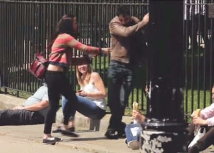 Mladi par (u stvarnosti dvoje glumaca) započeo je žustru svađu u jednom londonskom parku i stvari su izmakle kontroli. Glumci su odigrali isti scenario, ali zamijenili uloge žrtve i zlostavljača. Djevojka je počela zlostavljati mladića, a ovaj put prolaznici nisu reagovali jednako kao u prvom slučaju.