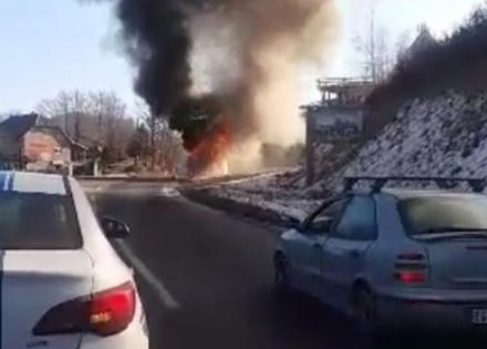 Autobus “Elan kompani” izgorio je danas u požaru na putu Bijelo Polje-Mojkovac, u mjestu Krstac, dok su djeca, koja su išla na sportski turnir, spasena.
