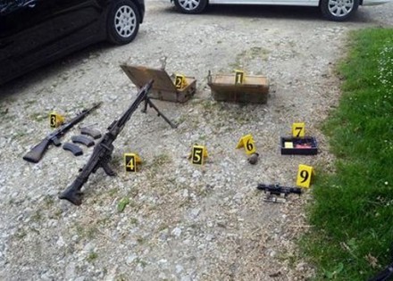 U pretresu kuće, pomoćnih objekata i automobila, koje koristi M.S, policija je pronašla vojne sanduke sa 1.721 metaka kalibra 7,62 milimetra, automatsku pušku M70, tri okvira za municiju AP M70, jedan klip zatvarača za AP M70, mitraljez M53, protivavionski metak kalibra 12,7 milimetara, ručnu bombu, optički nišan M76 B, dva manja komada TNT eksploziva, dva detonatora i jednu elektro kapsulu.