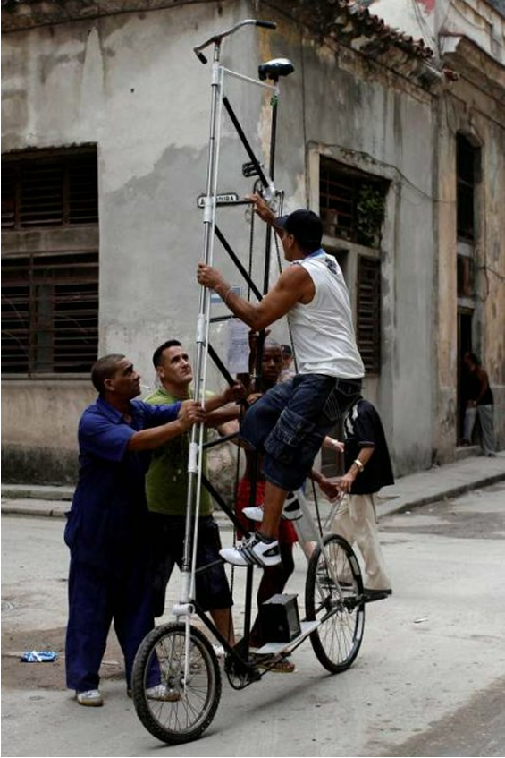 Kubanac Feliks Gvirola (48) svakodnevno se vozi uskim, oštećenim i krcatim ulicama Havane biciklom visokim četiri metra koji je sam izgradio.