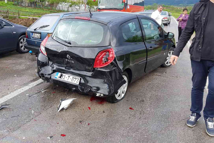 U nezgodi su učestvovala četiri vozila, dva Golfa, Alfa Romeo i Renault Clio.