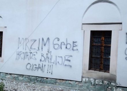 Nepoznati vandali ispisali su uvredljiv grafit na zidu Čekrekčijine džamije u sarajevskom naselju Kovači. Na zidu džamije ispisano je “Mrzim Srbe, Hrvate, Balije. Cigan!!! Mrzim sve nacije”.