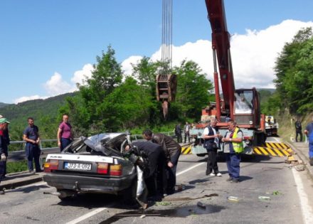Saobraćajna nesreća dogodila se u subotu oko 19 sati na magistralnom putu Goražde – Foča, kada je automobil Audi 80 udario u kamion firme koja je bila nagažovana za radove na putu, te sletio s nadvožnjaka i prevrenuo se na krov.