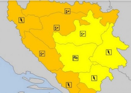 Narandžasto upozorenje za danas izdao je i Federalni hidrometeorološki zavod zbog mogućnosti jakog i na momente olujnog vjetra u većem dijelu BiH. Očekivani su udari vjetra iznad 50 kilometara na čas.