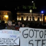 Ljudi, od kojih neki odjeveni u crno i s kapuljačama, nosili su cvijeće i transparente, a jedna od parola je “Nismo ni levi ni desni, nego prevareni”.