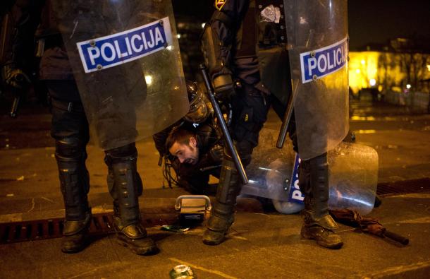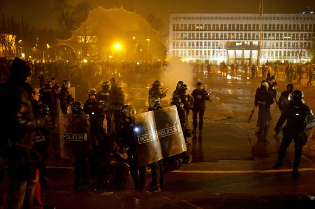 Kako su javili slovenački mediji, grupa demonstranata je na policiju u blizini slovenačkog parlamenta bacala komade kaldrme, baklje i druga pirotehnička sredstva, na šta je policija odgovorila prvo suzavcem, a potom i vodenim topom.