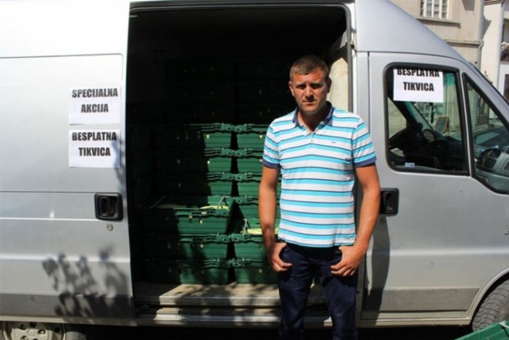 Jedan povrtar koji kaže da je “ponižen i uvrijeđen” otkupnom cijenom, podijelio je u centru Uba 1,5 tonu tikvica, Vladimir Jakovljević (40) iz sela Sovljak je uz pomoć prijatelja, u svom kombiju pakovao tikvice u kese i besplatno nudio inzenađenim prolaznicima u centru Uba.