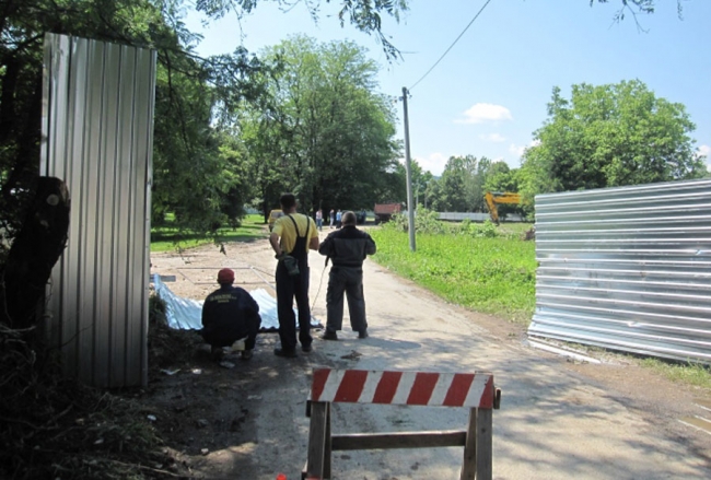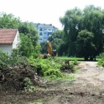 Na ovom mjestu bageri su već počeli rušiti drveće i postavljena je velika rampa za ulaz u gradilište na strani prema naselju Nova Varoš. Takođe postavlja se zaštitna metalna ograda kod Medicinske elektronike, što praktično znači da je cijeli park ograđen “bedemima”.