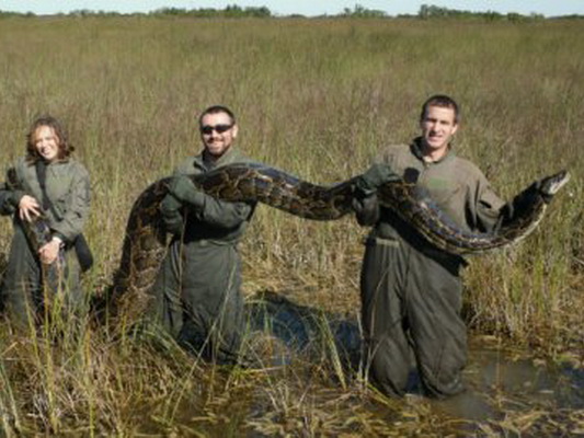 Burmanski pitoni (Python molurus bivittatus), čiji su pojedini primjerci dugački i do šest metara, veoma su invazivna vrsta, a u močvari Everglejds su prvi put pronađeni 1979. godine.