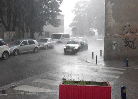 Obilna kiša, praćena gradom i vjetrom koja se u samo nekoliko minuta “prosula” na grad soli na sreću nije izazvala veće materijalne štete, a saobraćaj se zbog velikih količina kišnice na kolovozu odvijao otežano.