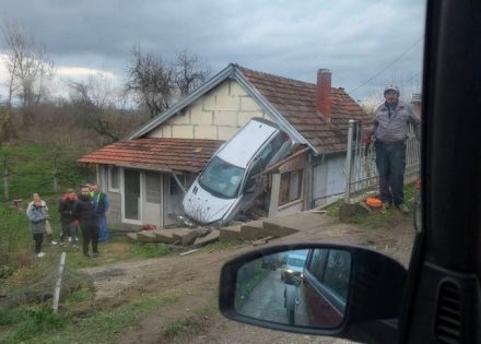 Automobil je, iz još neutvrđenih razloga, sletio s puta i završio direktno na krovu jedne porodične kuće.