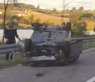 Saobraćajka kod Prijedora: Audi sletio sa puta pa završio na krovu