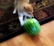Japanski šiba inu po imenu Tsuki star je 11 nedjelja i za sad je otkrio kako obožava lubenice – i mrzi lubenice. Japanski psić nije se dao zaplašiti veličinom lubenice na koju je navalio. Očito je da pokušava prodrijeti u