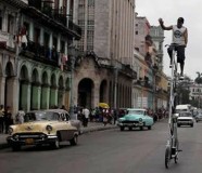 Kubanac Feliks Gvirola (48) svakodnevno se vozi uskim, oštećenim i krcatim ulicama Havane biciklom visokim četiri metra koji je sam izgradio.