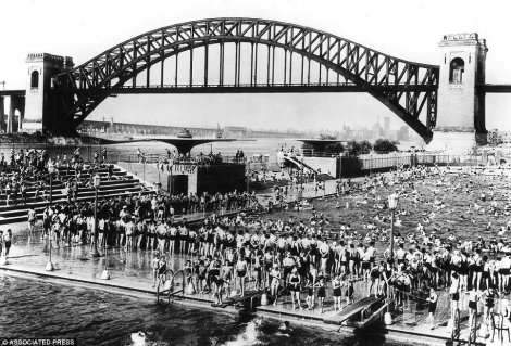 U ljeto 1940. Njujorčani su se brčkali u jednom od gradskih bazena, a u pozadini je Hel most.