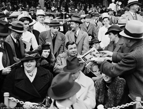 Bejb Rut, bejzbol legenda na ulici, okružen fanovima.