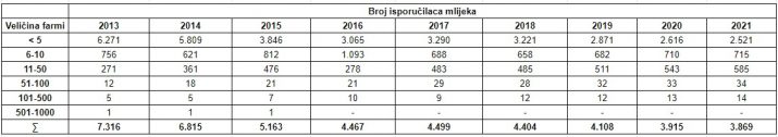 Iz Ministarstva ističu da je posebno zabrinjavajuće konstantno smanjenje broja muznih grla, te smanjen interes za uzgoj priplodnih junica kojim se osigurava kontinuitet ove proizvodnje, a što se može vidjeti iz sljedeće tabele.