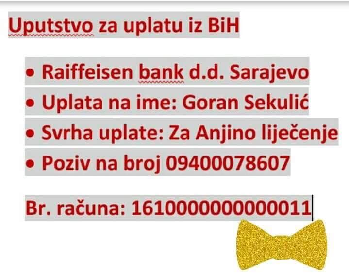 Od srca veliko hvala unaprijed i od mene i od tužnih roditelja koji ne gube nadu i koji se bore svim mogućim sredstvima za oporavak njihove Anje.