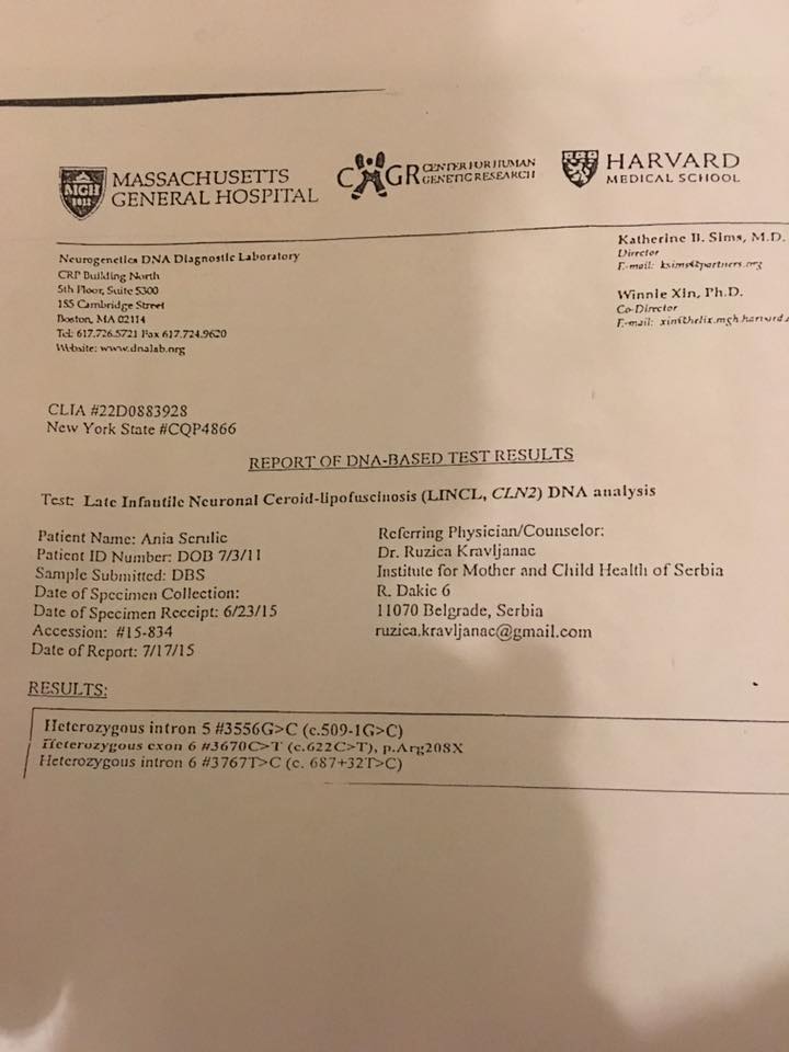 ”Dragi prijatelji i svi ljudi dobrog srca. Igrom slučaja upoznala sam oca od male Anje i saznala potresnu priču o bolesti njegove kćerkice. Anja Sekulić je rođena 7.3.2011 u Tesliću – Bosna i Hercegovina. Do 3 godine Anja je bila potpuno zdrava djevojčica sa puno energije, vesela i umiljata. Nakon toga roditelji primjećuju promjene na djetetu i odlaze doktoru. U prvim pretragama dolazi se do dijagnoze ”Epilepsija”. Medjutim, Anjino stanje se i dalje pogoršava. Počela je gubiti ravnotezu i počinje češće padati. Da bi nakon svih pretraga i nalaza iz USA, dijagnostifikovana Progresivna Batenova bolest – (NCL,CLN2).