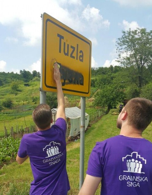 Pri ulazu u naš grad omladina Građanske snage danas je skinula mrlju sa table i ponovo smo čisti. Tako treba i ostati. Čistimo Tuzlu!”, naveli su na svojoj Facebook stranici članovi Građanske snage.