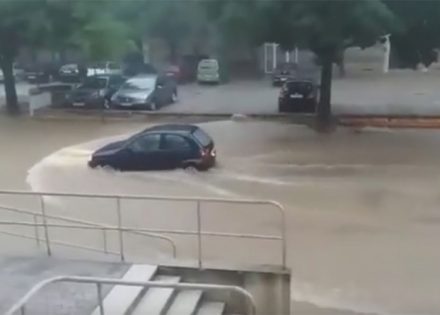 Bujica, koja se sinoć pojavila nakon obilnih kiša, potopila je i dijelove Istre, a u Šibeniku je jak vjetar, praćen kišom, rušio stabla.