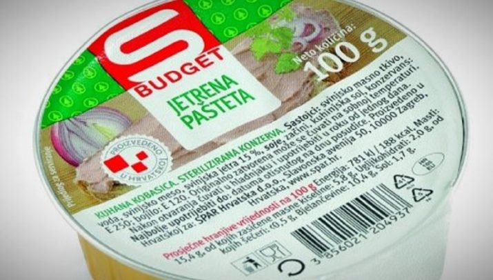 Pašteta se povlači s tržišta zbog povećane količine aerobnih mezofilnih bakterija, obavijestio je hrvatski Državni inspektorat.