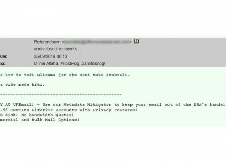 Redakcija “Nezavisnih novina” primila je anonimni e-mail sa ozbiljnim prijetnjama, vjerovatno upućene povodom referenduma o Danu RS.