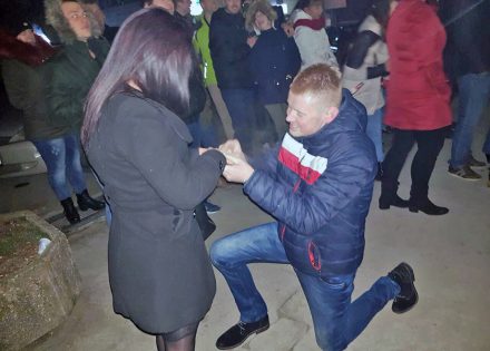 Mladi Prnjavorčanin Aleksandar Đukanović, iskoristio je trenutak u kojem su svi čestitali Novu godinu, da na Trgu srpskih boracca u Prnjavoru, zaprosi izabranicu svoga srca Jelenu Nježić.