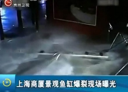 Petnaest osoba je lakše povrijeđeno nakon što je u trgovačkom centru Orijent u Šangaju u Kini pukao akvarij od 33,5 tona, u kojem su se nalazile ajkule.Akvarij je bio visok tri metra, a širok sedam metara. U nesreći su uginule tri ajkule.