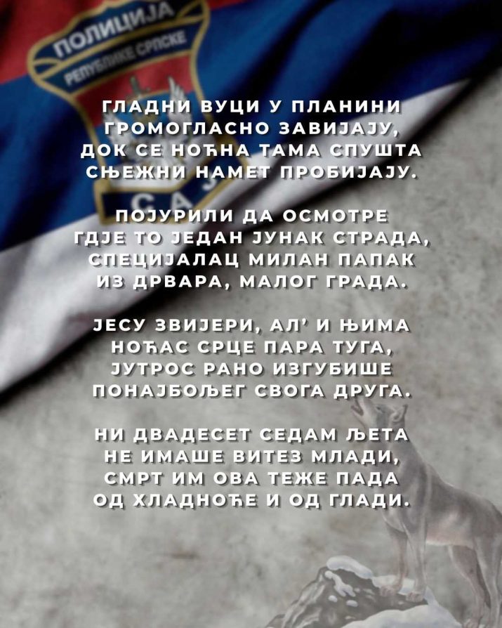 Iz MUP-a RS poručili su da će Milan Papak ostati upamćen kao predan kolega i čovjek.