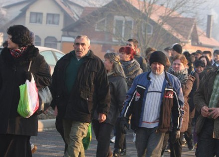 Kolona oko 200 radnika propalih tuzlanskih firmi „Konjuh“, „Aida“, „Dita“ i Livnice čelika krenula je juče prema graničnom prelazu Oršaje s ciljem napustanja BiH zbog nebrige vlasti za njihove probleme. Nakon noći provedene u Srebreniku, nastavili su put pješice prema Orašju i granici sa Hrvatskom.