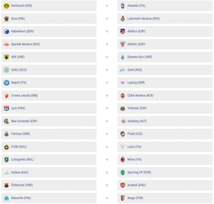 Fudbaleri Crvene zvezde igraće protiv CSKA Moskve u šesnaestini finala Lige Evrope, dok će fudbaleri Partizana igrati protiv Viktorije Plzenj.