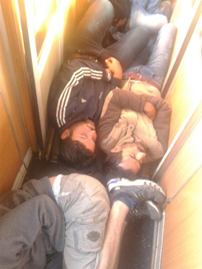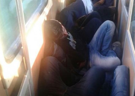 Ovi putnici uredno kupuju vozne karte, ali kondukteri gotovo da ne mogu da ih otkucaju zato što je prolaz blokiran desetinama migranata koji spavaju.